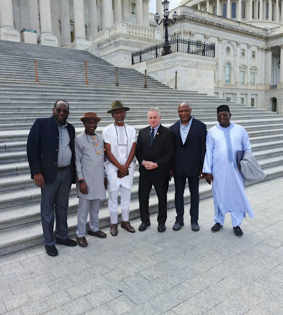 Group photograph of the delegation of the Nigeria/United States of America Parliamentary Friendship Group of the Nigerian House of Representatives during a parliamentary exchange visit of the committee to the U.S Congressman, Rep. Chris Smith, the Chairman, House Foreign Affairs Subcommittee on Africa. The visit was aimed at deepening the legislative relations between Nigeria and the United States. Held in the U.S Congress, Washington DC on Thursday, 1st May, 2025
