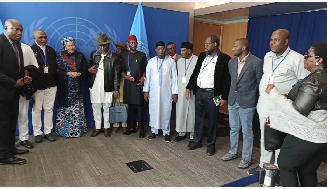 The Delegation of Nigeria/USA Parliamentary Friendship Group, House of Representatives, Federal Republic of Nigeria led by the Chairman, Hon. (Barr.) Okey-Jeo Onuakalusi with the Charge d' Affaires of the Nigerian Consulate in New York, Amb. Jeddah and Deputy Secretary-General of the United Nations, Hajia Amina Mohammed during a working visit of the Committee to the United Nations Headquarters in New York, USA on 2nd May, 2025.
