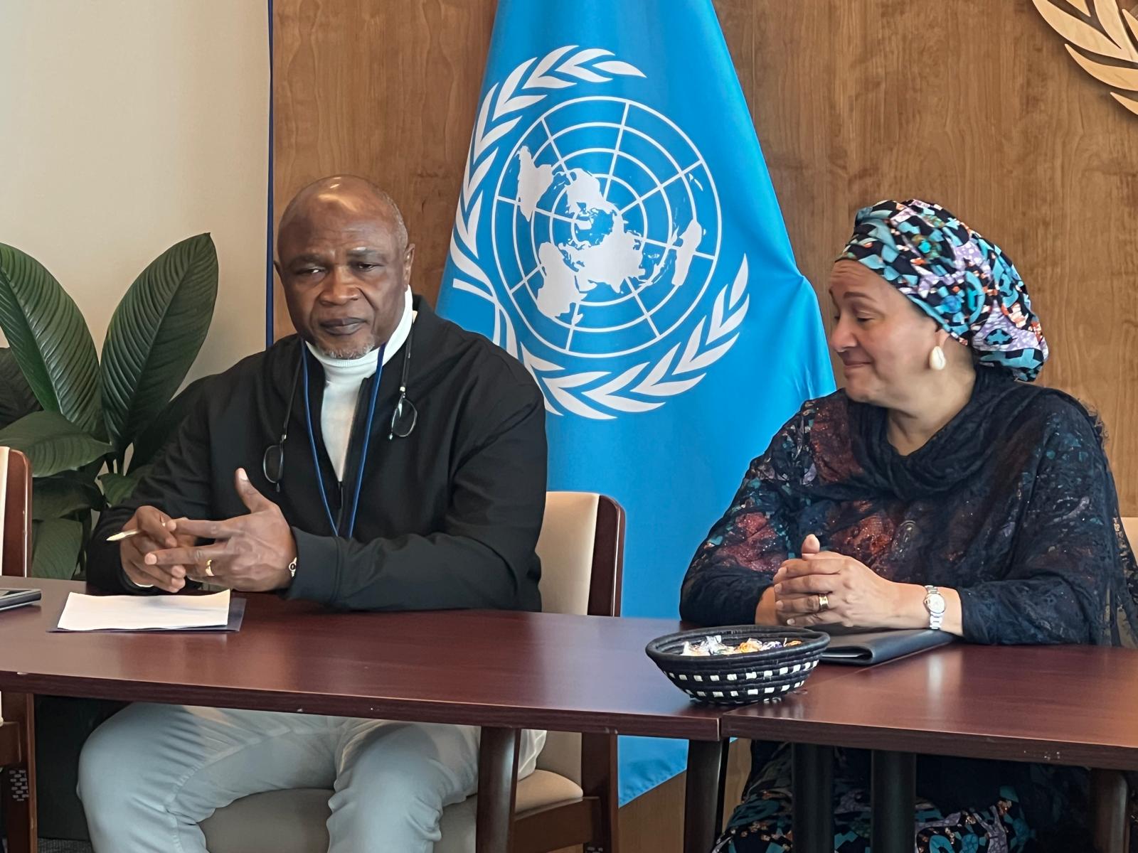 The Minority Leader of the House of Representatives, Federal Republic of Nigeria, Rt. Hon. Kingsley Chinda with the Deputy Secretary-General of the United Nations, Hajia Amina Mohammed during a working visit of the Delegation of the Nigeria/USA Parliamentary Friendship Group to the United Nations Headquarters in New York, USA on 2nd May, 2025