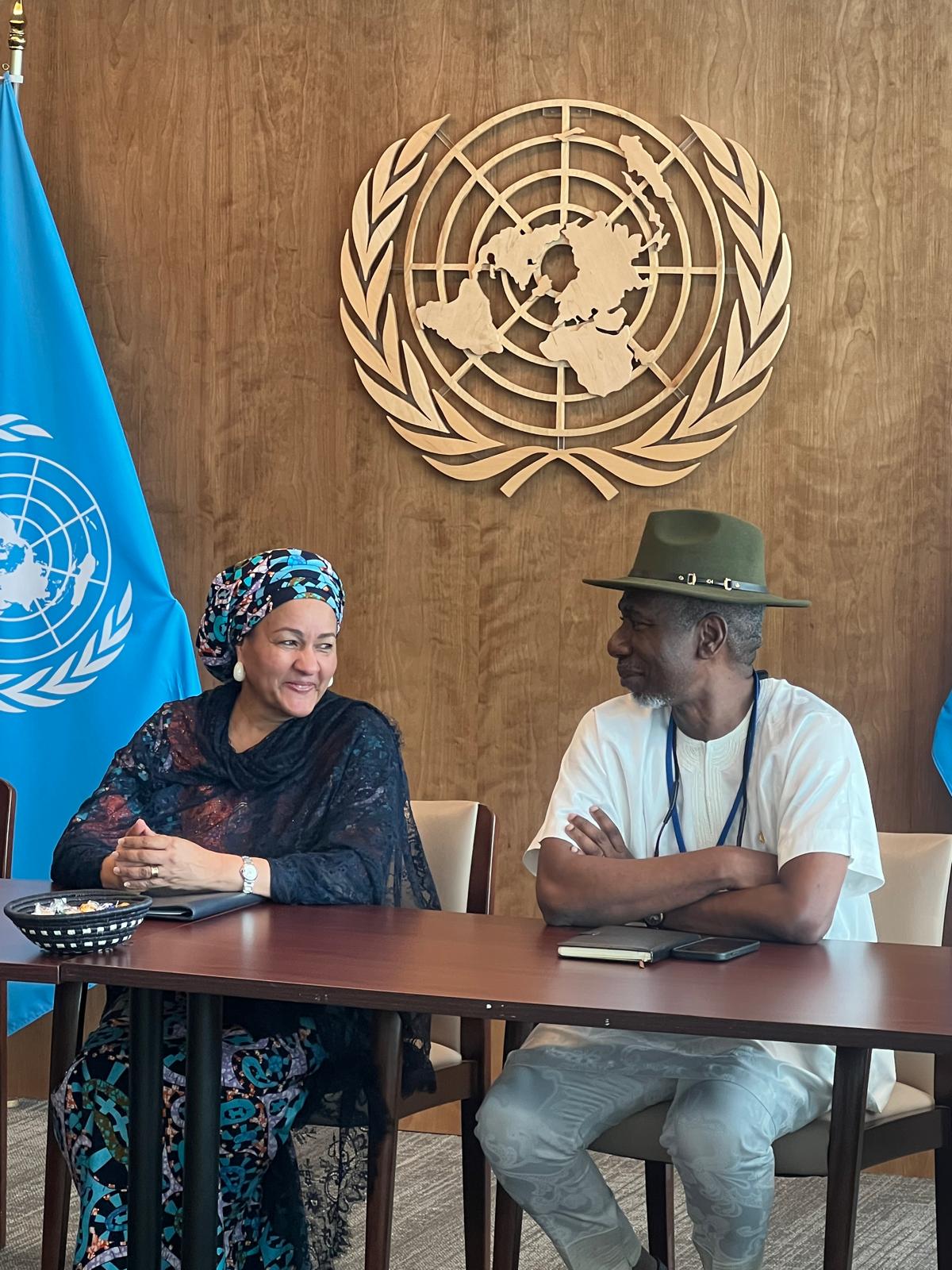 The Chairman, Nigeria/USA Parliamentary Friendship Group, House of Representatives, Federal Republic of Nigeria, Hon. (Barr.) Okey-Jeo Onuakalusi with the Deputy Secretary-General of the United Nations, Hajia Amina Mohammed during a working visit of the Delegation of the Committee to the United Nations Headquarters in New York, USA on 2nd May, 2025.