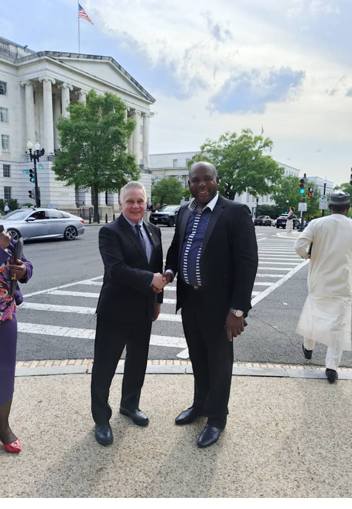 Rep. Chris Smith of the U.S. Congress, the Chairman of the House Foreign Affairs Subcommittee on Africa with Hon. Okey-Jeo Onuakalusi, the Chairman of the Nigeria/USA Parliamentary Friendship Group of the Nigerian House of Representatives, during a working visit of the Group to the United States Congress, Washington DC on May 1, 2025.