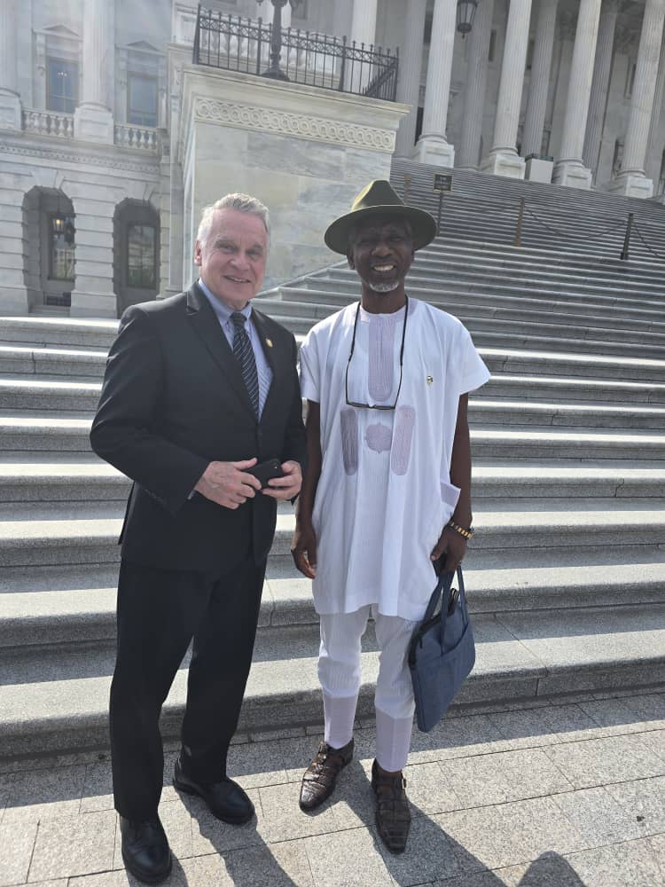 Rep. Chris Smith of the U.S. Congress, Chairman of the House Foreign Affairs Subcommittee on Africa with Chief Ezeala Martins, the Clerk of the Nigeria/USA Parliamentary Friendship Group of the Nigerian House of Representatives, during a working visit of the Group to the United States Congress Subcommittee in Washington DC on May 1, 2025.