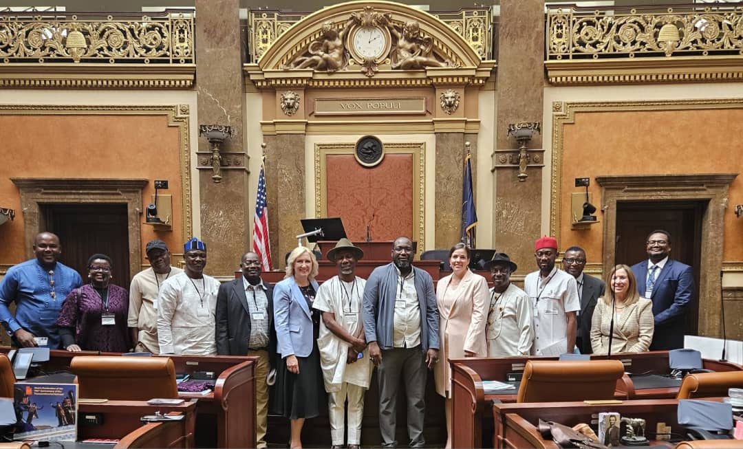 Group picture of the delegation of the Nigeria/USA Parliamentary Friendship Group while inside the Chamber of the State of Utah Parliament with the Utah House Leader and other Utah Rep Members on 4th of May, 2025