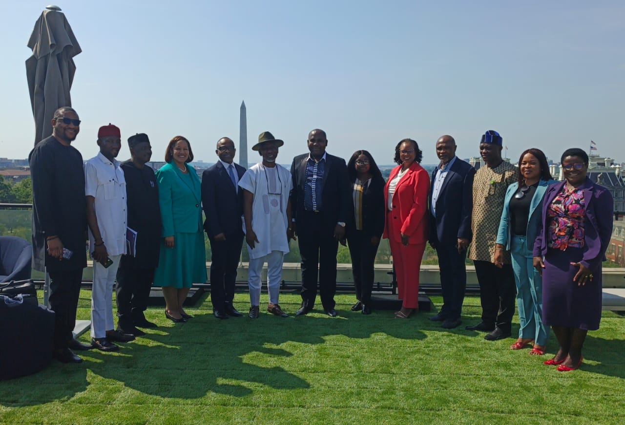 Group photograph of the delegation of the Nigeria/USA Parliamentary Friendship Group led by the Chairman, Hon. Okey-Jeo Onuakalusi after a roundtable meeting with the Officials of the U.S. Department of State led by Will Stevens, the Deputy Assistant Secretary, Bureau of African Affairs, and Officials of the Nigerian Embassy in Washington DC, USA on 30th April, 2025