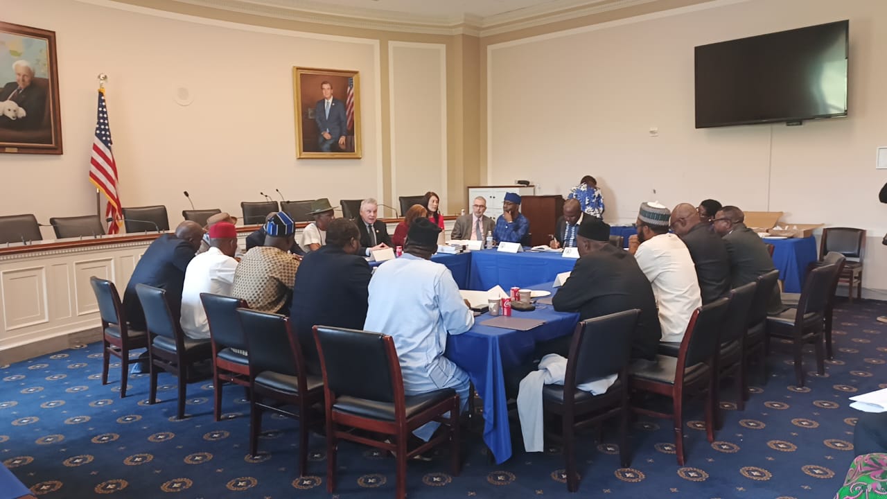 The delegation of the Nigeria/USA Parliamentary Friendship Group of the Nigerian House of Representatives on a roundtable meeting with Rep. Chris Smith, the Chairman, Congress House Committee on Foreign Affairs Subcommittee on Africa, Washington DC.